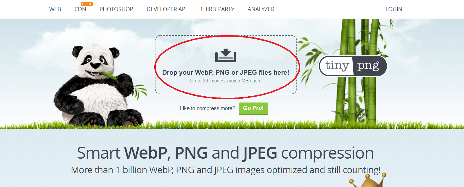 2. Drop your image in the box provided and you're good to go with a compressed image now!
