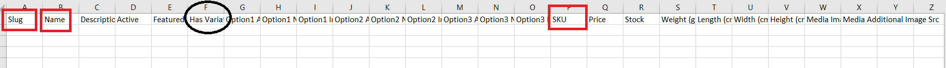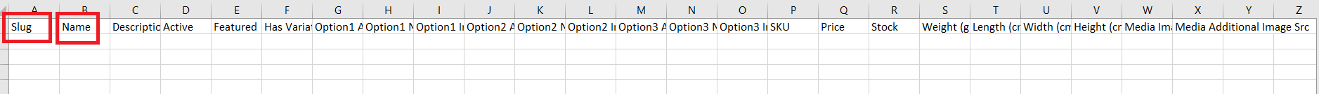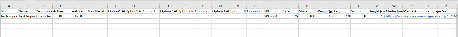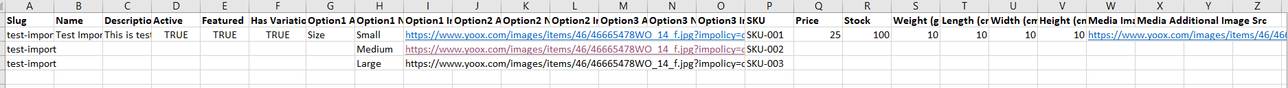 *Note: Slug and SKU must be filled in each column because both are required fields and cannot be empty.