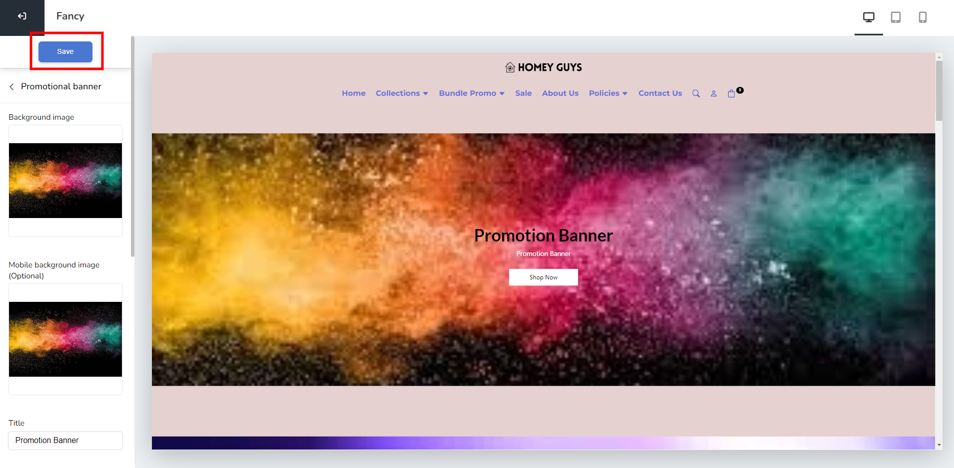 5. After done edit the promotion banner you just need to "Save" button, then the system will save it and update your store webpage design.