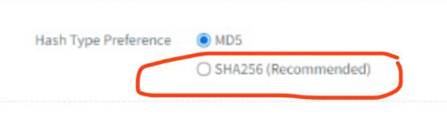 Note: Please take note that for the "Hash Type Preference" need to select the SHA256.