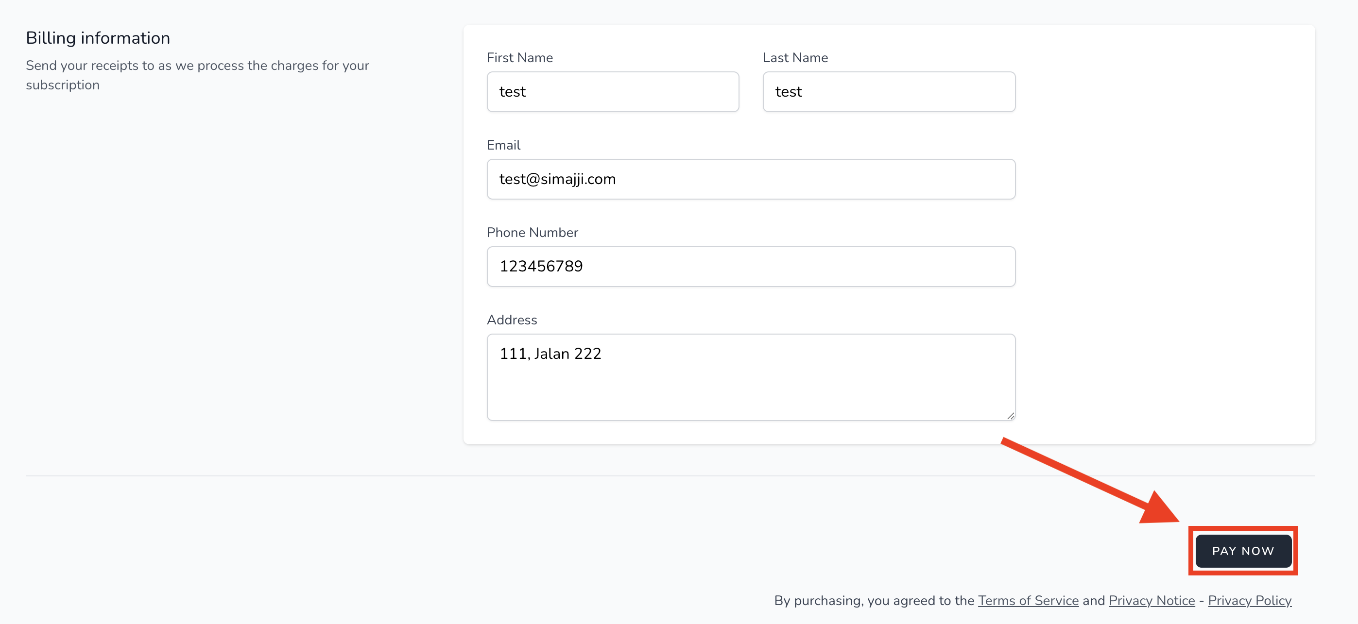 - Setelah mengesahkan sekali lagi anda telah memilih pakej, kaedah pembayaran, isikan maklumat pengebilan dan maklumat domain. Kemudian anda boleh butang "PAY NOW" dan selesaikan pembayaran.