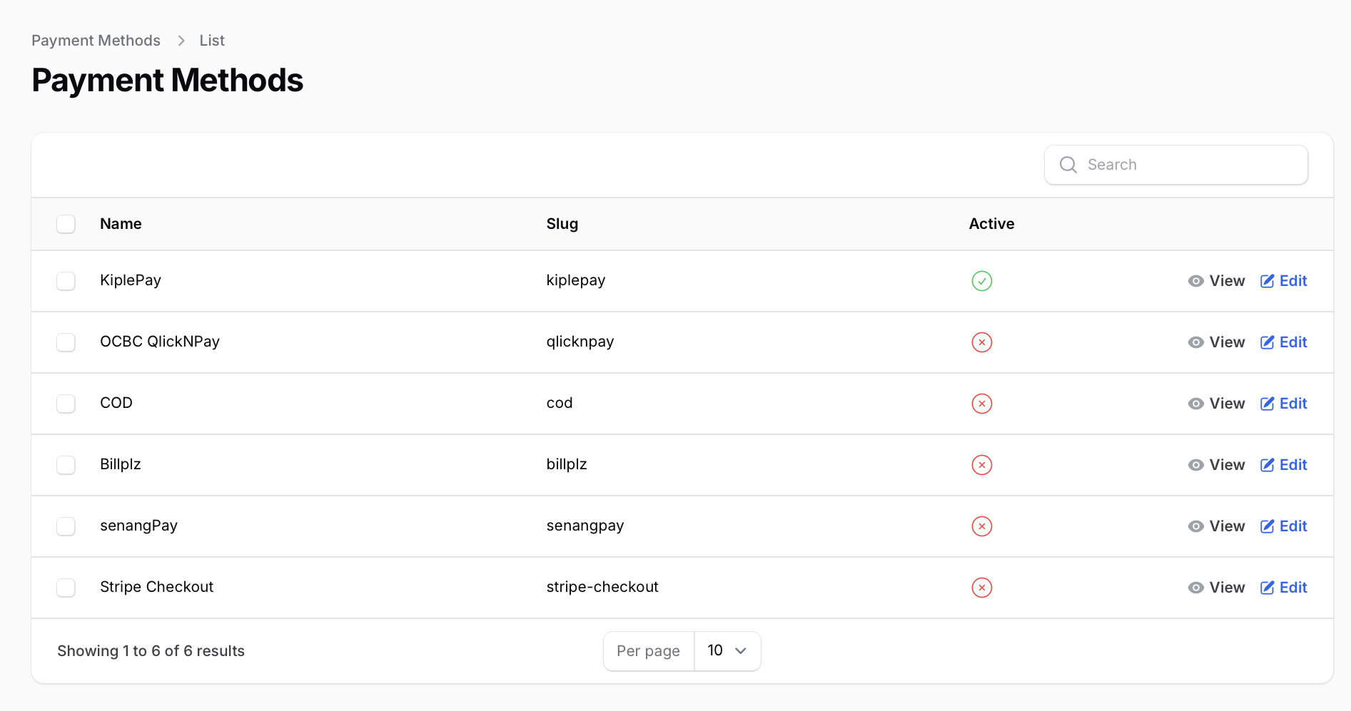 3. Pergi ke Settings > Payment Methods, pastikan status kaedah pembayaran anda "Active".